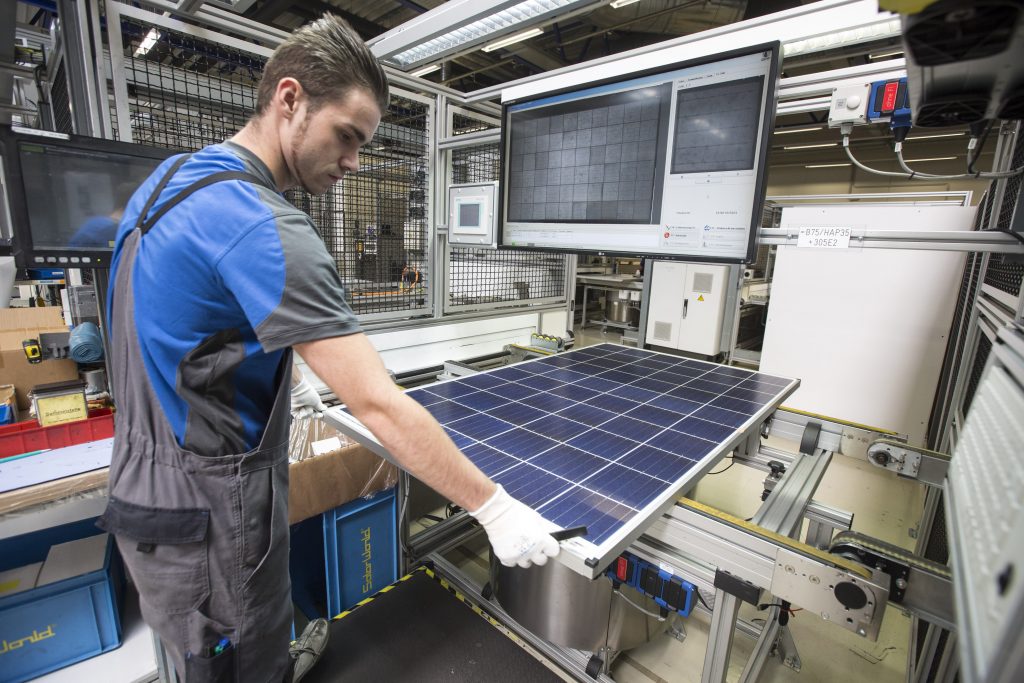 An employee carries out quality control checks on a photovoltaic module following manufacture at Solarworld AG in Freiberg, Germany, on Thursday, July 29, 2016. Solarworld rose the most in five months after the German solar panel maker resolved to fight a U.S. court ruling that awarded damages to the U.S. polysilicon supplier Hemlock Semiconductor Corp. Photographer: Martin Leissl/Bloomberg via Getty Images
